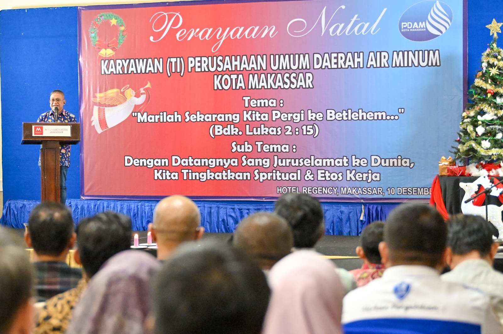 Perayaan natal tahun 2024 yang dilaksanakan oleh Perumda Air Minum Kota Makassar, 10 Desember 2024 bertempat di Hotel M-Regency dengan mengambil tema "Marilah Sekarang Kita Pergi ke Betlehem" (Ndk.Lukas 2:15) berlangsung meriah dan khidmat. Ketua panitia perayaan natal Perumda Air Minum K