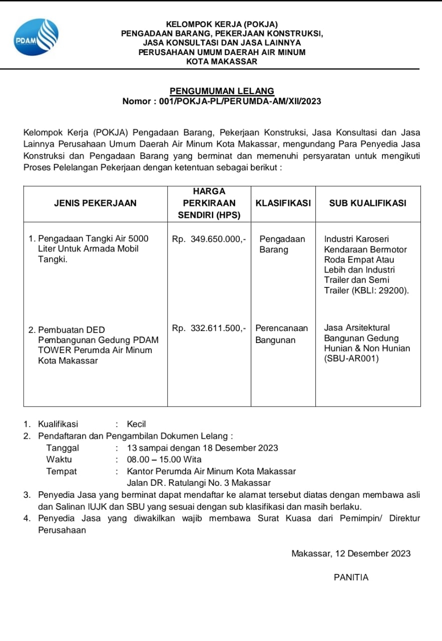 Pembangunan masjid di kompleks kantor Perumda Air Minum Kota Makassar jl. Dr. Ratulangi resmi dimulai. Secara simbolis, dilakukan peletakan batu pertama oleh Wali Kota Makassar, Bapak Ramdhan Pomanto, Jumat/22 Desember 2023. Renovasi pembangunan dari musala menjadi masjid yang diberi nama Masjid Ma