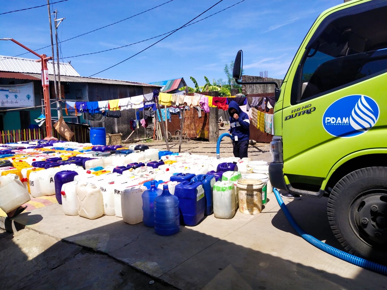 Pembagian Air Bersih Gratis Melalui Mobil Tangki PDAM